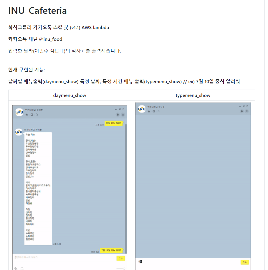 오늘은 daymenu_show 함수 추가와, github 정리에 시간을 쏟았다.