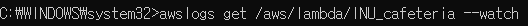 그룹 이름들 6. awslogs get 그룹이름 --watch 를 입력해 실시간으로 로그를 출력한다.