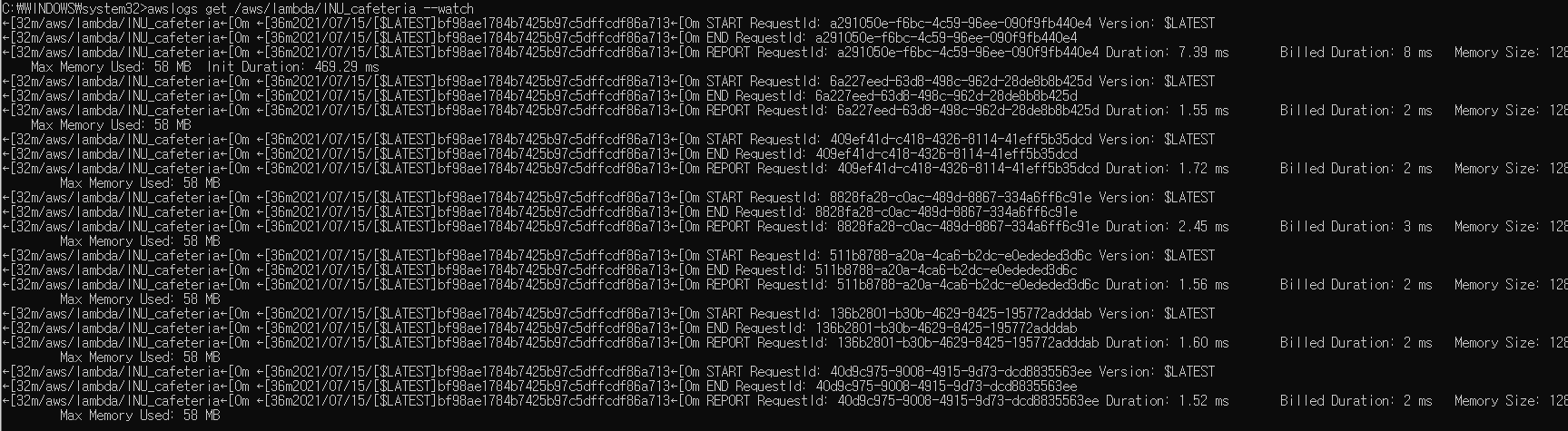 그동안 request를 보낸 후 정상적으로 출력이 되지 않으면 일일이 Cloud watch에 들어가서 로그그룹을 누르고.. 수동으로 확인하고 있었는데, 위의 링크에서 배포하고 있는 프로그램이 실시간 로그 출력을 가능하게 한다는것을 알게 되었다.