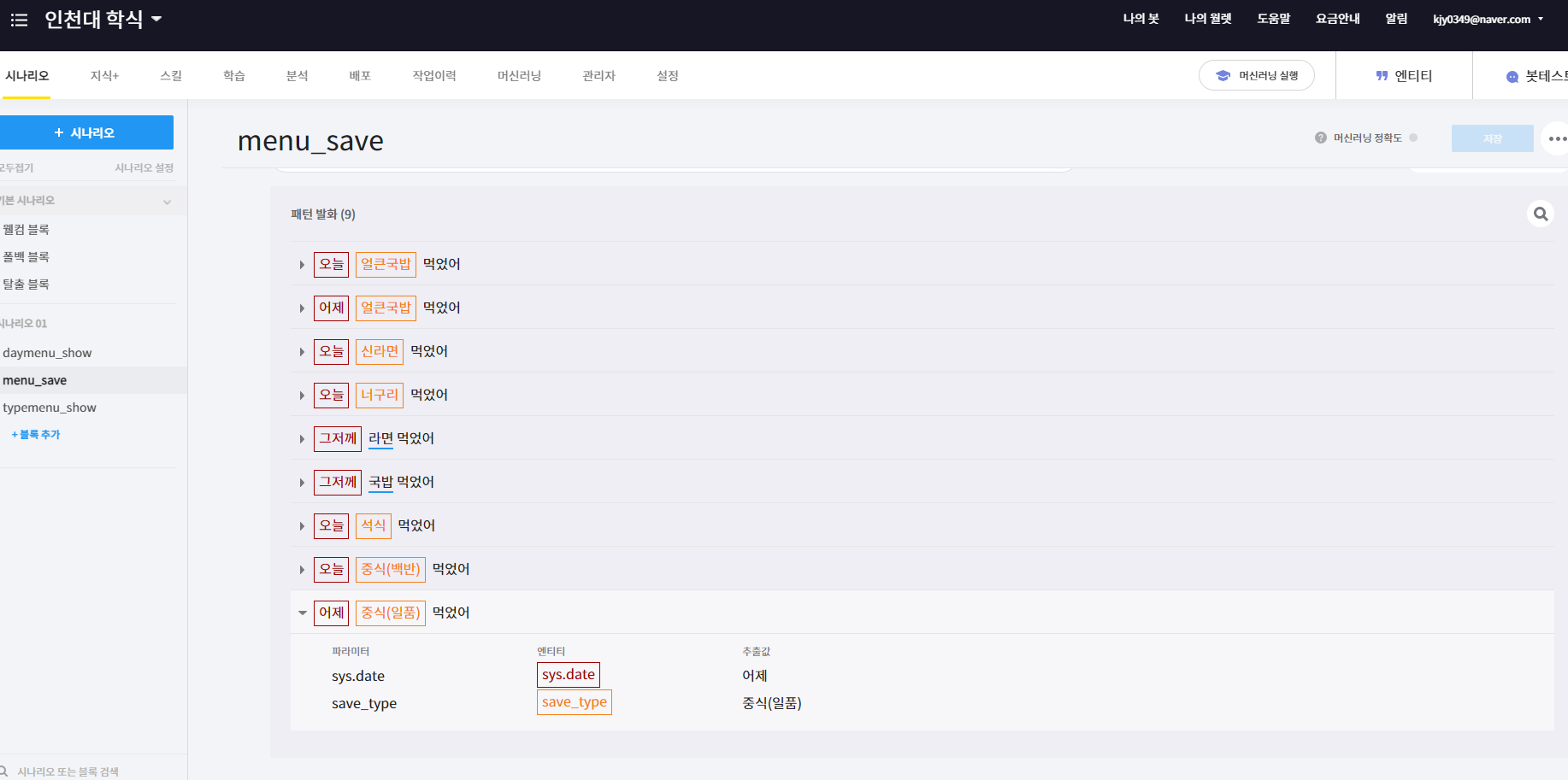 그래서 엔티티와 발화를 전부 갈아엎고, 처음부터 작업을 다시 시작하는 바람에 menu_save를 하루만에 완성시키지 못햇다.
