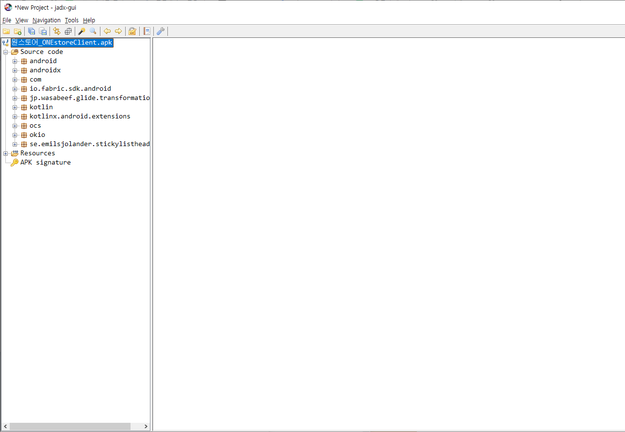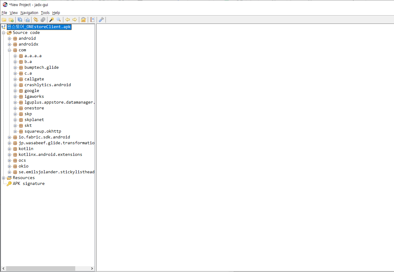 원스토어 어플리케이션 이미지 디컴파일 대상은 원스토어라는 어플리케이션이다. 여러 어플리케이션을 둘러보던 도중, 일반적인 오프라인형 게임과 같은 어플리케이션보다 온라인 결제모듈을 가지고 있는 대기업의 어플리케이션을 디컴파일 해보는것이 더 도움이 될것 같아 원스토어를 디컴파일 해보기로 결정했다.