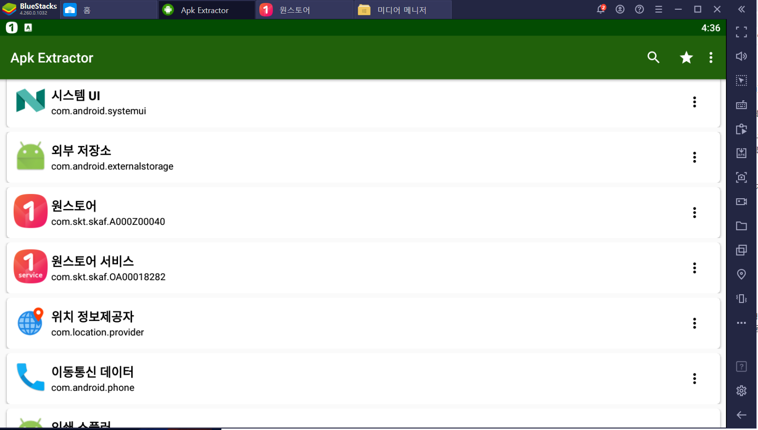 디컴파일하기 위해서는 먼저 APK 파일이 필요하다. 나는 안드로이드 스마트폰을 가지고 있지 않기 때문에, 블루스택을 이용했다. 블루스택과 함께 플레이스토어에서 배포되고있는 Apk Extractor을 이용해서 Apk 파일을 추출했다.