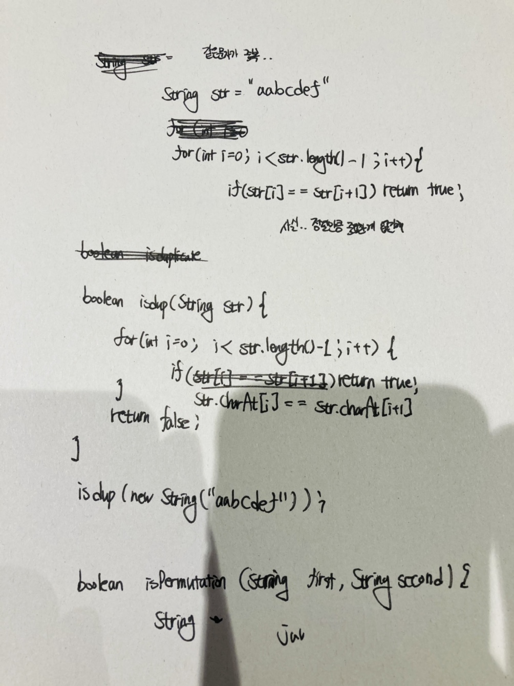 아이패드를 가지고 나오지 않은 관계로 공책에 손코딩을 한 날이다.